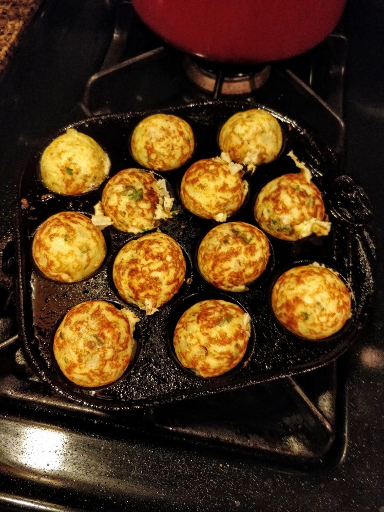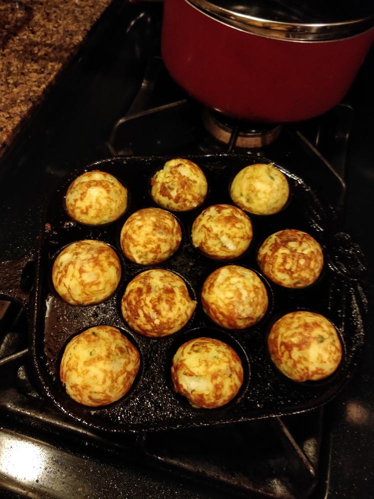Flipping the paniyaram on time is what let’s it form into a ball versus remaining a hemisphere.