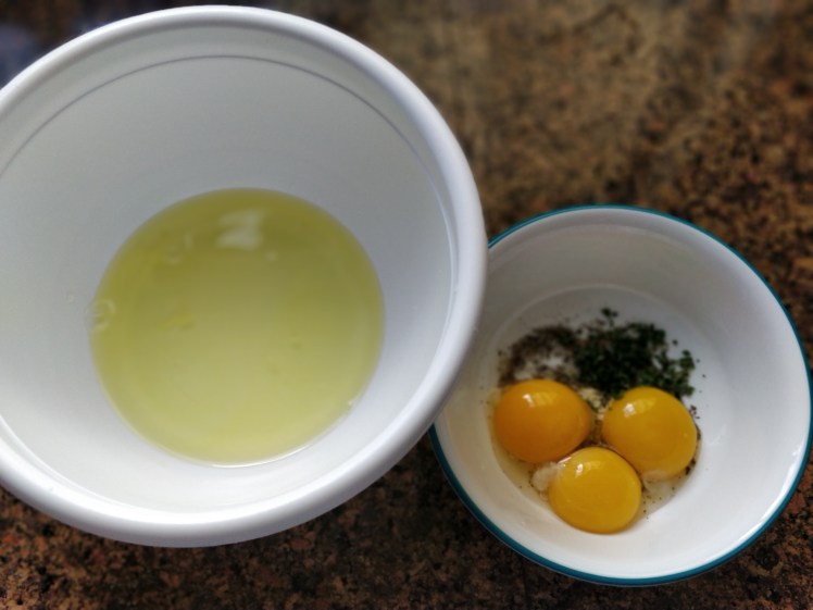 3. Add the salt and pepper to the yolk mixture along with the chives and basil and mix