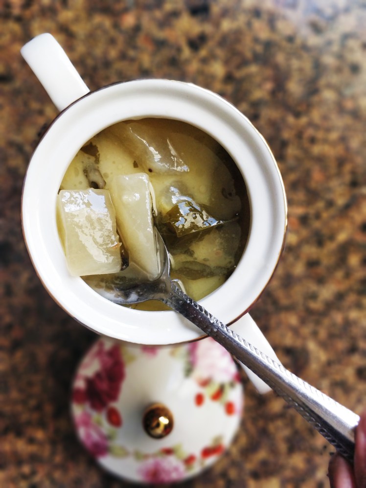 Olan is a mild and simple curry made with a base of coconut milk using Ash Gourd (Kumbalanga) or Madras Cucumber (Vellarikka)