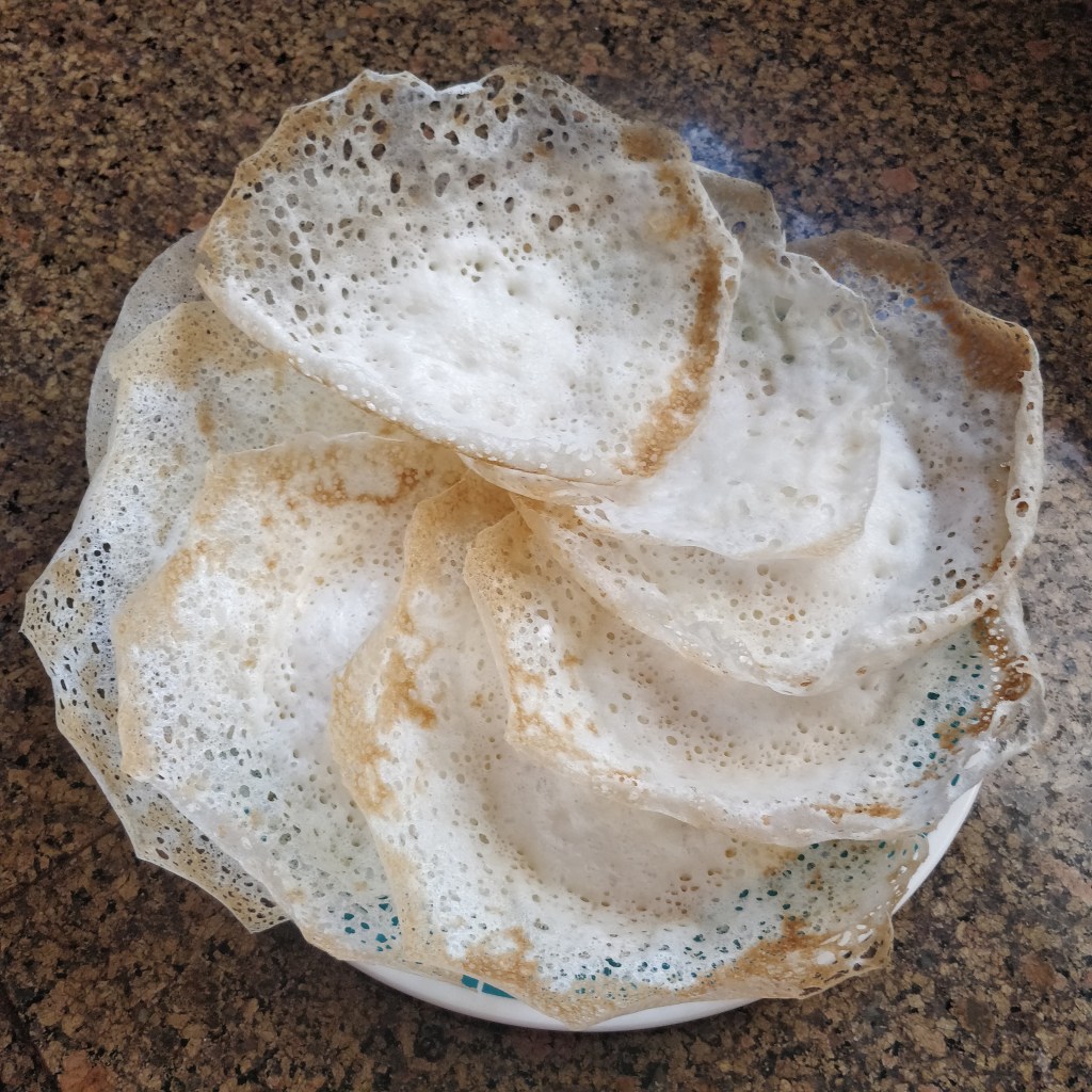 This recipe yields 8 appams. If you want the “Lace” of the appam to be golden, make your appams in a cast iron appam pan.