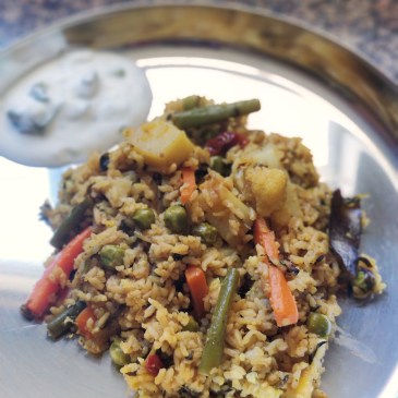 Ingredients 2 tbsp Vegetable oil 3 Cloves 3 Cardamom pods (lightly crushed) 1 Cinnamon stick 1 Bay leaf 2-3 Green Chillies (slit lengthwise) 1 tsp Cumin (Jeera) powder 1 tbsp Coriander powder 1/2 tbsp Red Chilli powder 1 cup Onion (sliced long and thin) 1.5 tbsp Ginger Garlic paste 1/4 cup Tomato slices 1 … More Vegetable rice
