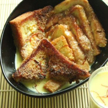 The eternally simple dessert that satisfies a sweet tooth, Shahi Tukda is made of butter toasted bread and a slightly thinner Basundi. (Not for the calorie conscious!!) … More Shahi Tukda